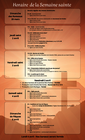 Horaire de la Semaine sainte de l'Unité missionnaire
